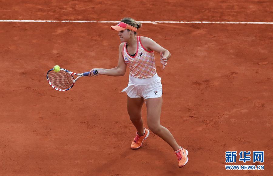 10月8日,克宁在比赛中回球。 当日,在法国巴黎进行的2020年法国网球公开赛女单半决赛中,美国选手克宁以2比0战胜捷克选手科维托娃,晋级决赛。 新华社记者高静摄