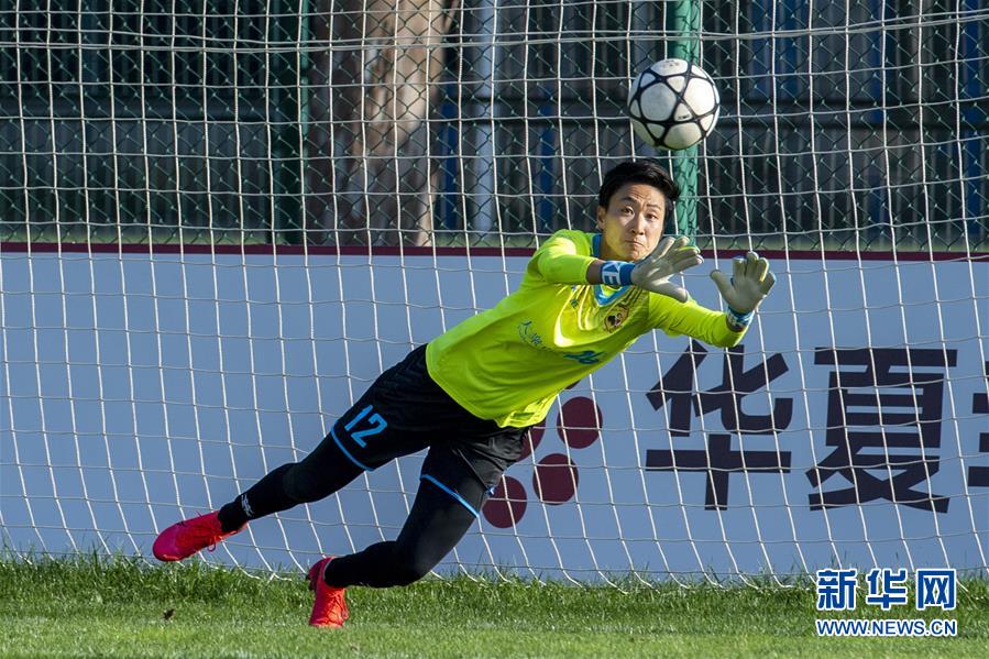 10月10日,长春大众置业队守门员毕晓琳在比赛中扑救。 当日,在2020年中国足球协会女子足球超级联赛第二阶段保级组第五轮比赛中,长春大众置业队以2比0战胜河南建业队。 新华社发(陈欣波摄)