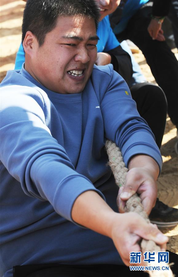 10月10日,新寨乡机关代表队的队员在拔河比赛中。 当日,为促进乡村文化振兴,丰富农村群众的精神文化生活,山西省五寨县新寨乡在田间地头组织了一场别开生面的拔河比赛,全乡12个村的12支队伍参加了比赛。 新华社记者 马毅敏 摄