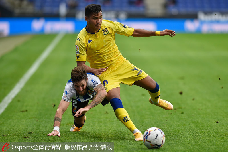 人民网北京10月11日电(杨乔栋)北京时间10月10日晚,西乙联赛第五轮继续进行。在西班牙人对阵阿尔科孔的比赛中,中国球员武磊首发上场,并打完上半场。最终,凭借着队友德托马斯的破门建功,西班牙人最终以1-0小胜阿尔科孔,积分达到13分,取得3连胜的同时暂时反超希洪竞技登上联赛榜首位置。
