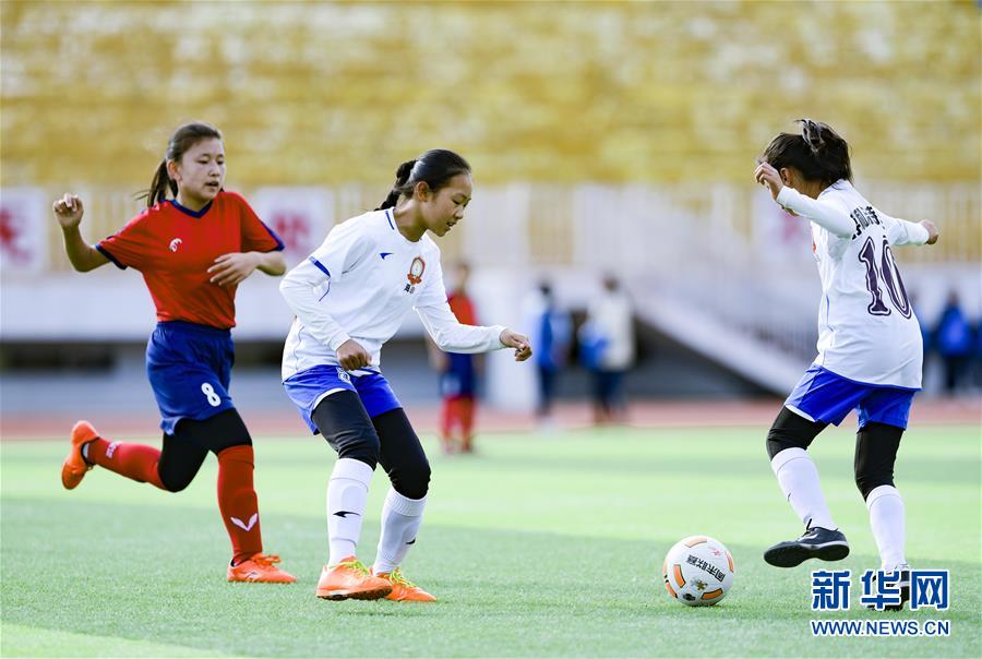 10月11日,呼和浩特市新城区海拉尔路小学学生(白衣)在比赛中进攻。 当日,2020年呼和浩特市“市长杯”校园足球联赛小学组比赛拉开战幕。 新华社发(王正 摄)