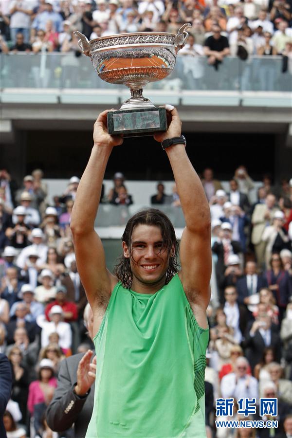 10月11日,在2020法国网球公开赛男单决赛中,“红土之王”纳达尔横扫头号种子焦科维奇,第13次在罗兰加洛斯加冕男单冠军,并追平了瑞士人费德勒保持的20次大满贯夺冠的男子纪录。 图为2008年6月8日,纳达尔高举奖杯庆祝胜利。当日,在巴黎进行的2008年法国网球公开赛男单决赛中,纳达尔以3比0战胜瑞士选手费德勒,第四次获得法网男单冠军。 新华社/路透