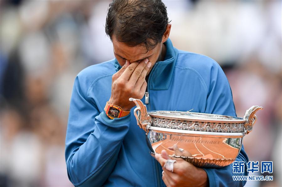 10月11日,在2020法国网球公开赛男单决赛中,“红土之王”纳达尔横扫头号种子焦科维奇,第13次在罗兰加洛斯加冕男单冠军,并追平了瑞士人费德勒保持的20次大满贯夺冠的男子纪录。 图为2018年6月10日,纳达尔在颁奖仪式上。当日,在法国巴黎进行的2018法国网球公开赛男子单打决赛中,西班牙选手纳达尔以3比0战胜奥地利选手蒂姆,第十次获得法网男单冠军。 新华社记者陈益宸摄