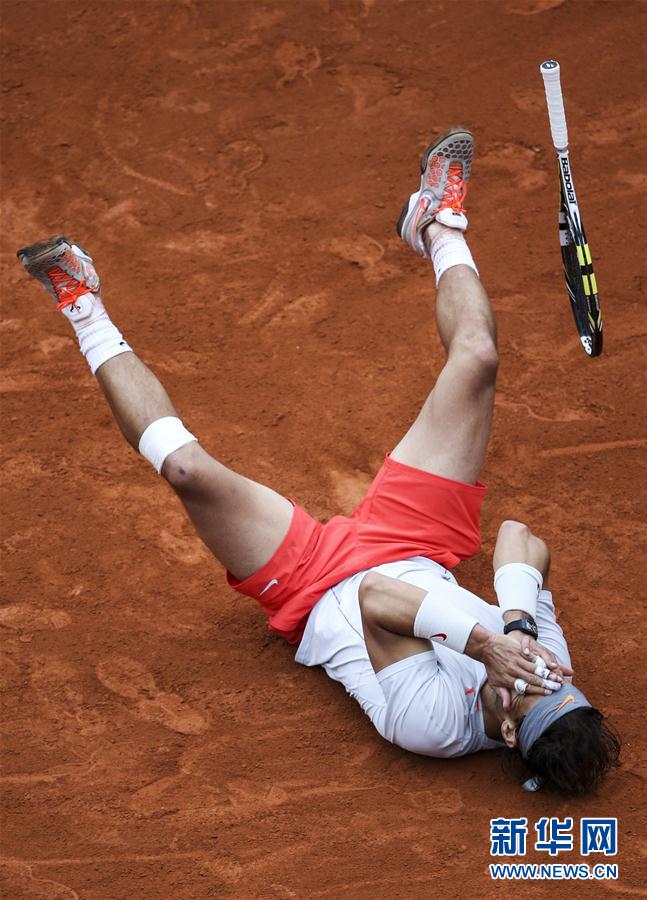 10月11日,在2020法国网球公开赛男单决赛中,“红土之王”纳达尔横扫头号种子焦科维奇,第13次在罗兰加洛斯加冕男单冠军,并追平了瑞士人费德勒保持的20次大满贯夺冠的男子纪录。 图为2013年6月9日,纳达尔在决赛中倒地庆祝胜利。当日,在2013年法国网球公开赛男单决赛中,西班牙选手纳达尔以3比0战胜同胞费雷尔,第八次获得法网男单冠军。 新华社发(唐诗摄)