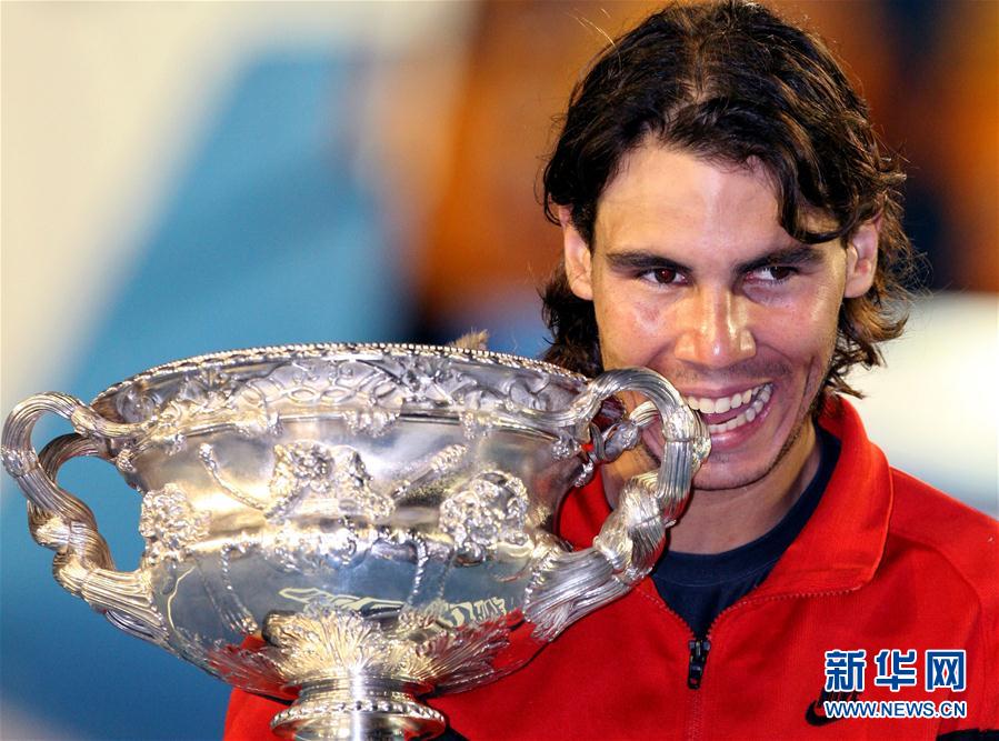 10月11日,在2020法国网球公开赛男单决赛中,“红土之王”纳达尔横扫头号种子焦科维奇,第13次在罗兰加洛斯加冕男单冠军,并追平了瑞士人费德勒保持的20次大满贯夺冠的男子纪录。 图为2009年2月1日,纳达尔在颁奖仪式上亲吻奖杯留影。当日,在墨尔本进行的2009年澳大利亚网球公开赛男单决赛中,纳达尔以3比2战胜瑞士选手费德勒,首次夺得澳网男单冠军。 新华社记者韩岩摄