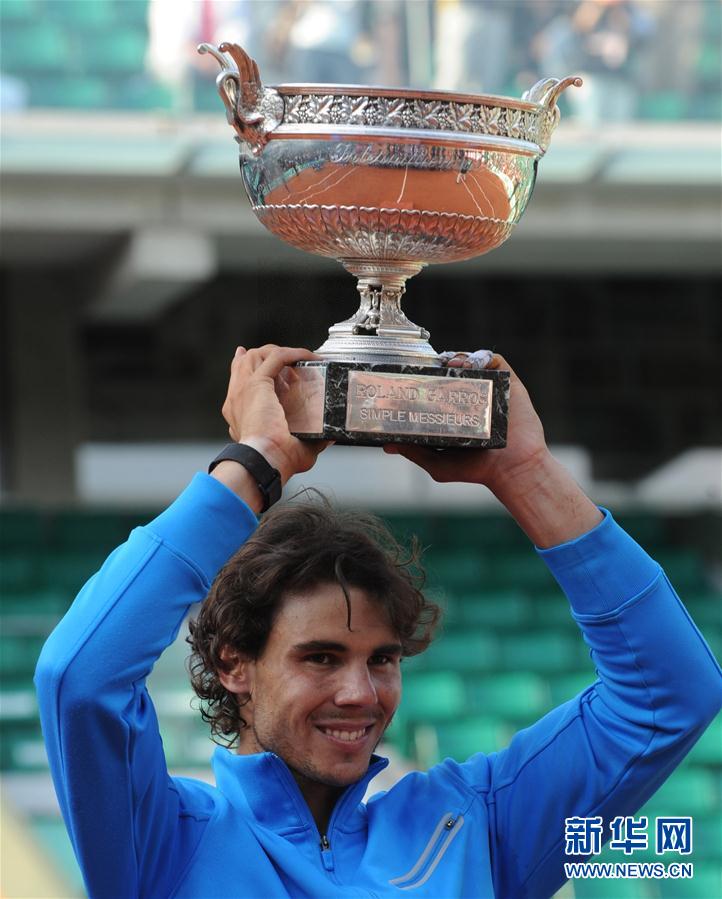 10月11日,在2020法国网球公开赛男单决赛中,“红土之王”纳达尔横扫头号种子焦科维奇,第13次在罗兰加洛斯加冕男单冠军,并追平了瑞士人费德勒保持的20次大满贯夺冠的男子纪录。 图为2011年6月5日,纳达尔在颁奖仪式上高举奖杯庆祝。当日,在2011年法网男单决赛中,西班牙选手纳达尔以3比1战胜瑞士选手费德勒,第六次获得法网男单冠军。 新华社记者徐亮摄