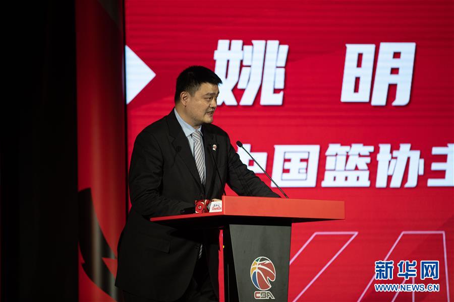 新华社照片,北京,2020年10月12日 (体育)(2)篮球——CBA新赛季发布会在京举行 10月12日,中国篮协主席、CBA联盟董事长姚明在新闻发布会上致辞。 当日,2020-2021赛季中国男子篮球职业联赛(CBA)新闻发布会在北京举行。 新华社记者 吴壮 摄