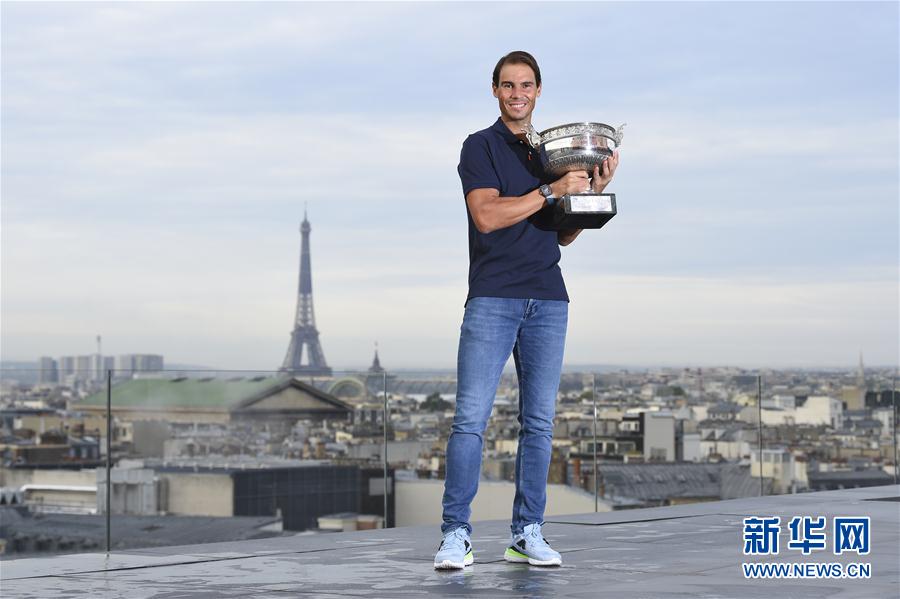 10月12日,2020年法网男单冠军纳达尔与奖杯合影。 10月11日,在法国巴黎进行的2020年法国网球公开赛男单决赛中,西班牙选手纳达尔以3比0战胜塞尔维亚选手焦科维奇,夺得冠军。 新华社发(法国网球协会供图)