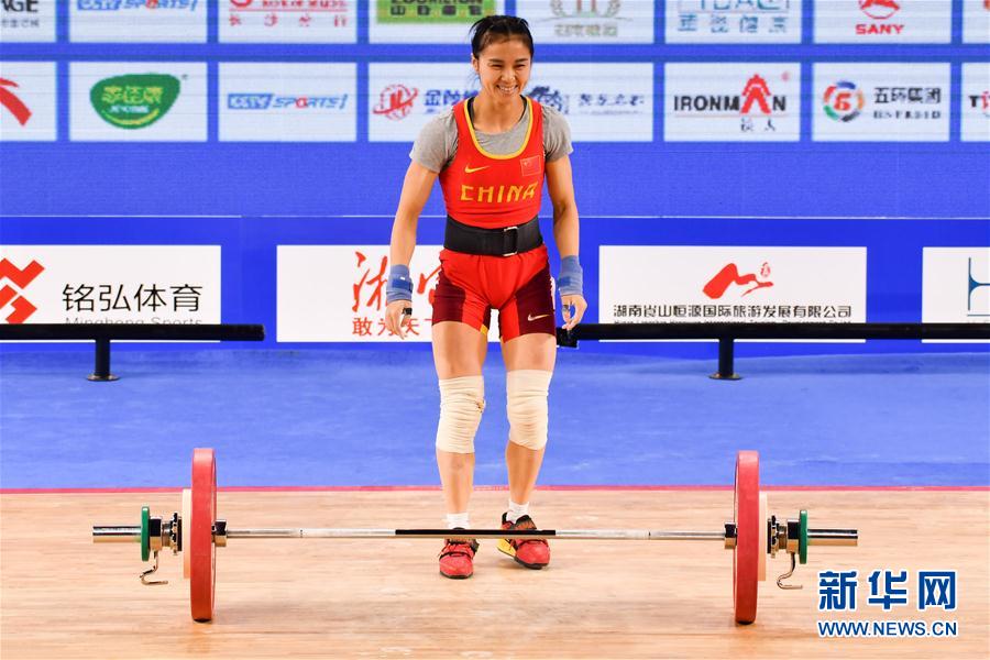 10月16日,四川队选手曾梅在打破45公斤级全国抓举纪录后庆祝。 当日,在“崀山杯”2020年全国女子举重锦标赛暨东京奥运会模拟赛45公斤级A组比赛中,四川队选手曾梅以抓举82公斤,挺举101公斤,总成绩183公斤获得第一名,并打破该级别抓举和总成绩的全国纪录。 新华社记者陈思汗摄
