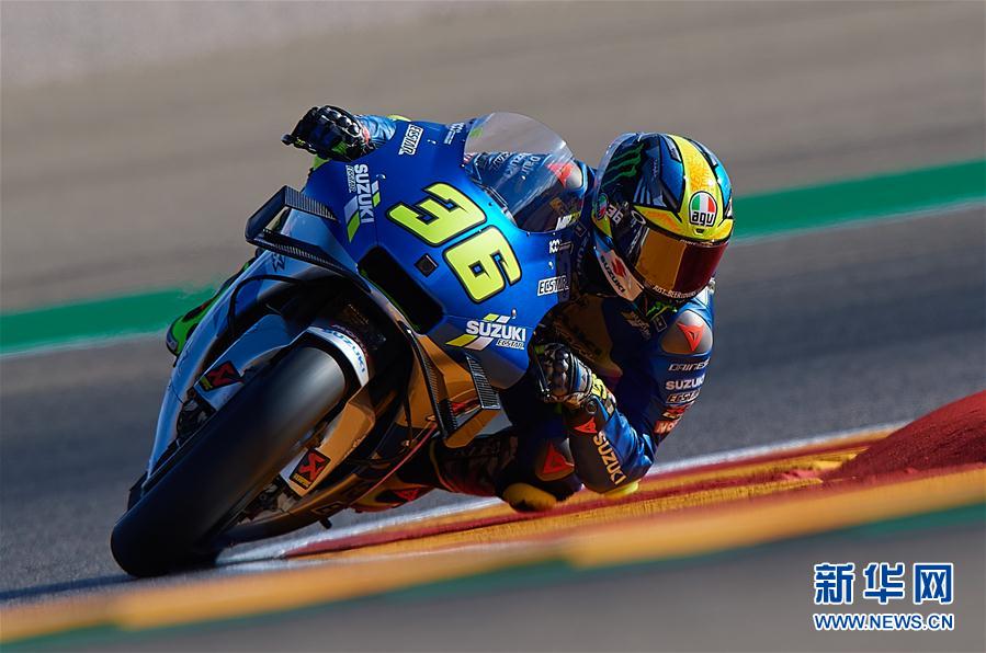 10月18日,铃木车队车手胡安·米尔在比赛中。最终,他以41分57秒035的总成绩获得季军。 当日,2020年世界摩托车锦标赛阿拉贡站MOTOGP比赛在西班牙阿尔卡尼斯举行。 新华社发(帕布罗·莫拉诺摄)