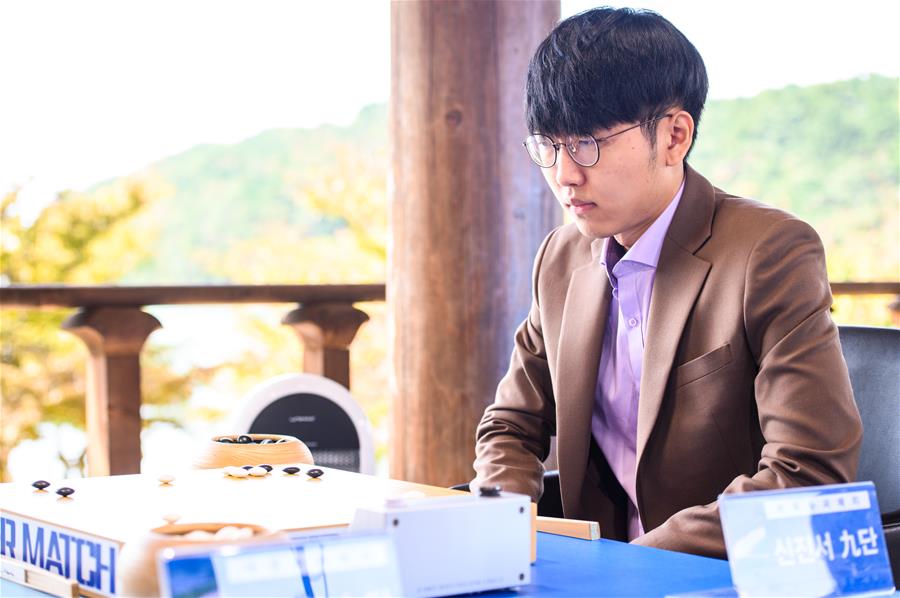10月19日,申真谞在比赛中。 当日,韩国围棋超级对决七番棋首轮比赛在韩国庆尚南道南海郡举行,申真谞九段战胜朴廷桓九段。 新华社发