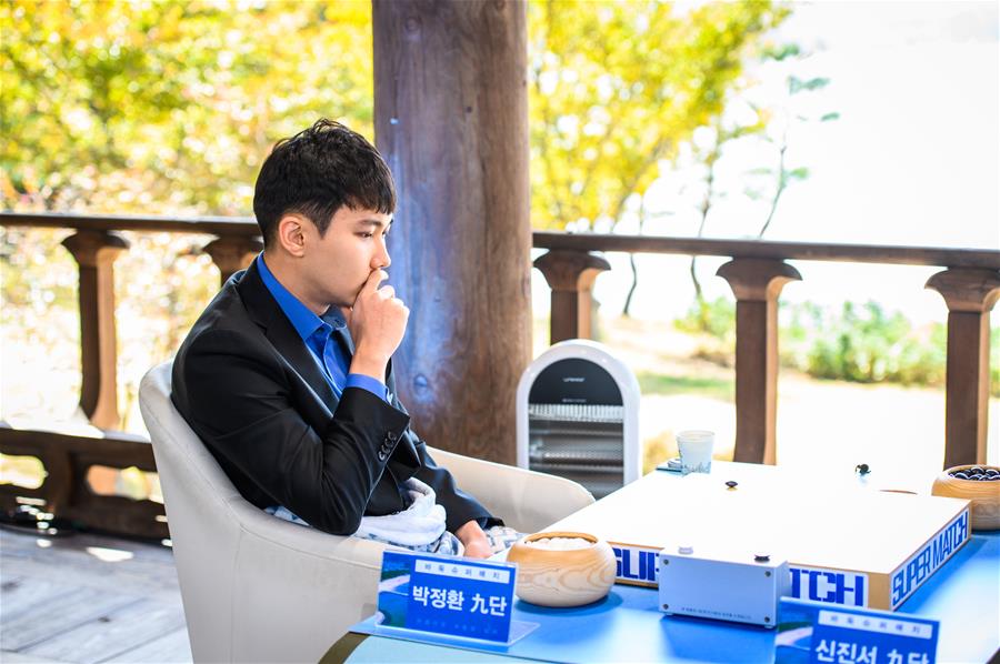 10月19日,朴廷桓在比赛中。 当日,韩国围棋超级对决七番棋首轮比赛在韩国庆尚南道南海郡举行,申真谞九段战胜朴廷桓九段。 新华社发