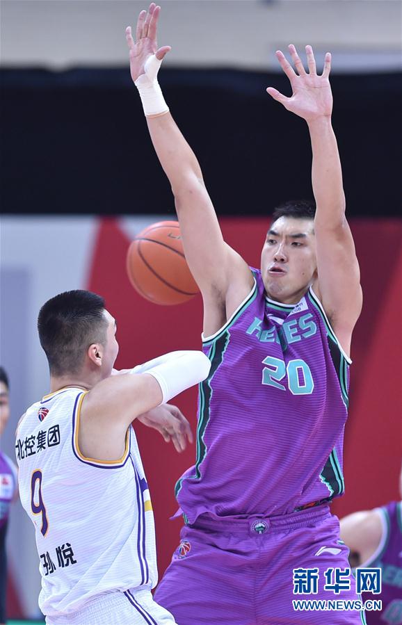 10月19日,山东西王队球员陶汉林(右)在比赛中防守北京紫禁勇士队球员孙悦。 当日,在浙江诸暨举行的2020-2021赛季中国男子篮球职业联赛(CBA)第一阶段首轮比赛中,山东西王队以99比83战胜北京紫禁勇士队。 新华社记者黄宗治摄