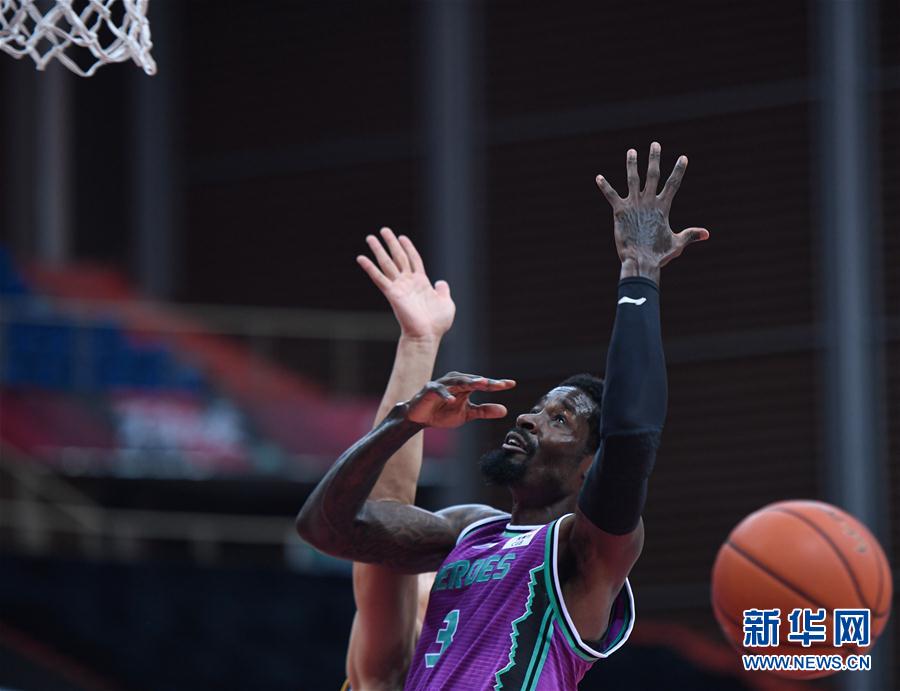 10月19日,山东西王队球员哈里斯在比赛中进攻受阻。 当日,在浙江诸暨举行的2020-2021赛季中国男子篮球职业联赛(CBA)第一阶段首轮比赛中,山东西王队以99比83战胜北京紫禁勇士队。 新华社记者 黄宗治 摄
