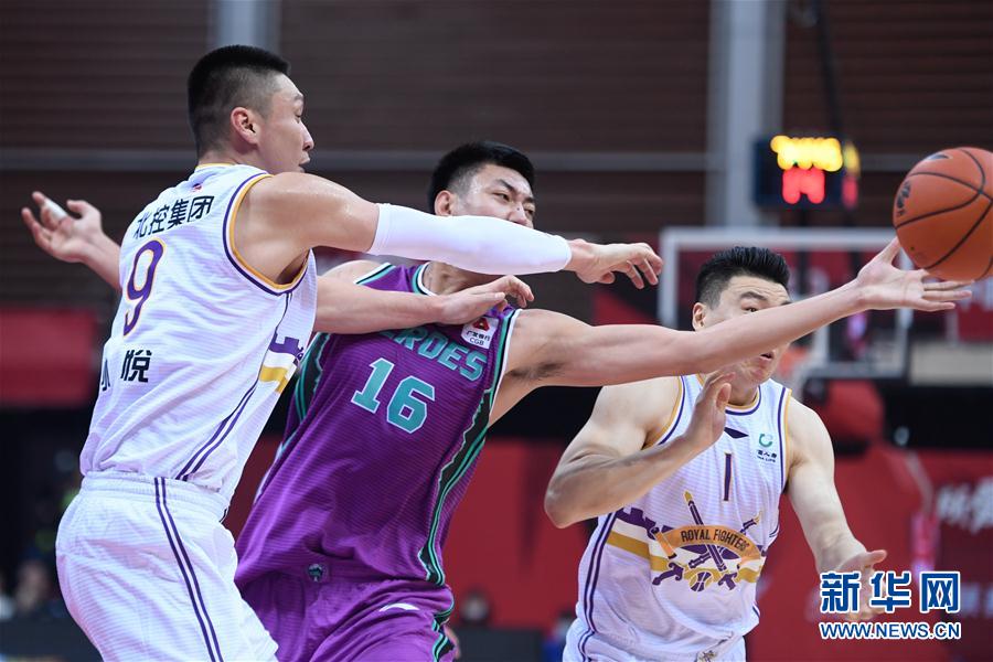 10月19日,北京紫禁勇士队球员孙悦(左)与山东西王队球员焦海龙(中)在比赛中拼抢。 当日,在浙江诸暨举行的2020-2021赛季中国男子篮球职业联赛(CBA)第一阶段首轮比赛中,山东西王队以99比83战胜北京紫禁勇士队。 新华社记者 黄宗治 摄