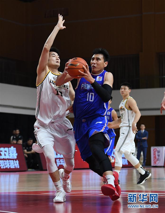 10月19日,天津先行者队球员金鑫(右)在比赛中突破上篮。 当日,在浙江诸暨举行的2020-2021中国男子篮球职业联赛(CBA)第一阶段比赛首轮比赛中,辽宁本钢队以121比108战胜天津先行者队。 新华社记者 沙达提 摄