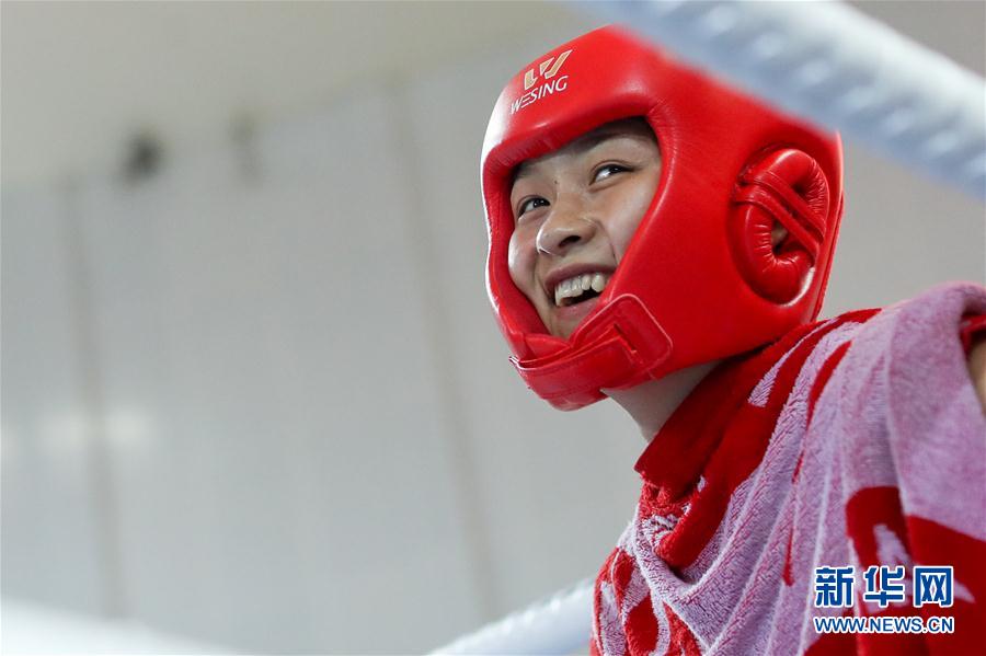 10月20日,河北九江队选手常园在比赛间隙休息。 当日,在河北省迁安市唐山九江体育中心进行的2020年“迁安杯”全国女子拳击锦标赛51公斤级四分之一决赛中,河北九江队选手常园以5比0战胜吉林队选手李明艳,晋级四强。 新华社记者 欧东衢 摄