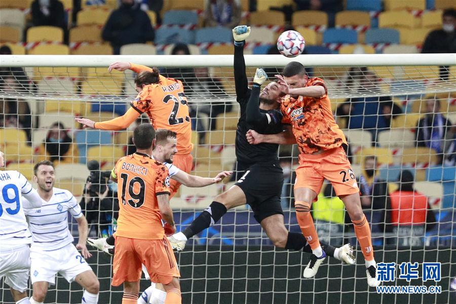 10月20日,尤文图斯队球员德米拉尔(右一)和基辅迪纳摩队守门员布什昌(右二)在比赛中拼抢。 当日,在乌克兰基辅进行的2020-2021赛季欧洲足球冠军联赛小组赛G组首轮比赛中,意甲尤文图斯队客场以2比0战胜乌克兰基辅迪纳摩队。 新华社/美联