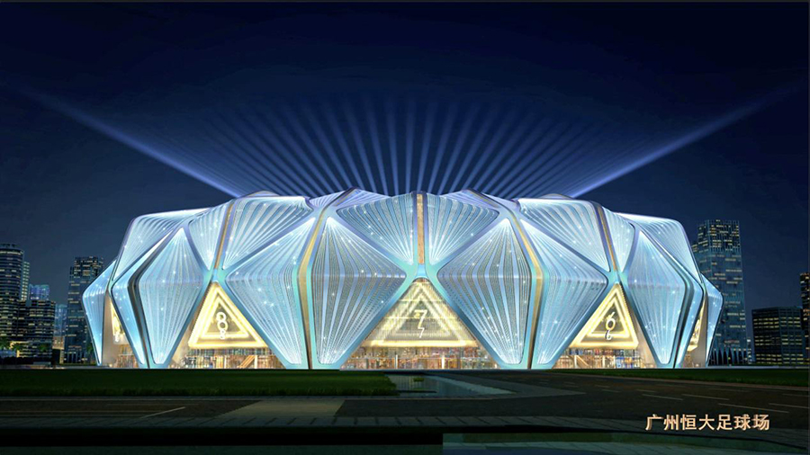 继今年7月设计方案获广州市城市规划委员会全票通过后,广州恒大足球场球场灯光效果片又于近日正式亮相。