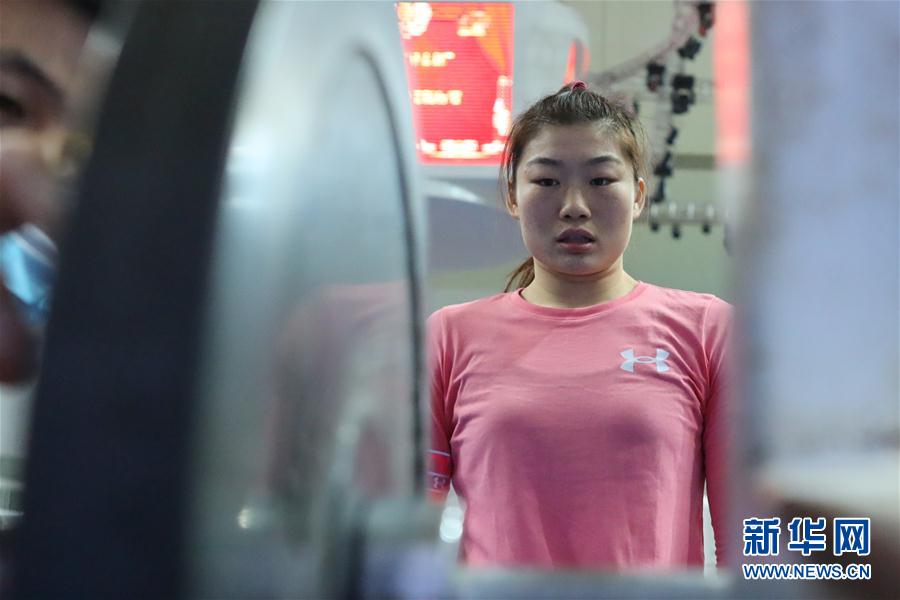 10月21日,河南队选手郑璐在卧推相对力量测试前检查杠铃重量。 当日,在河北省迁安市唐山九江体育中心进行的2020年“迁安杯”全国女子拳击锦标赛赛程过半,主办方举行体能测试,各级别前四强选手参加了30米跑、垂直纵跳、卧推相对力量和背肌耐力四项测试。 新华社记者 欧东衢 摄