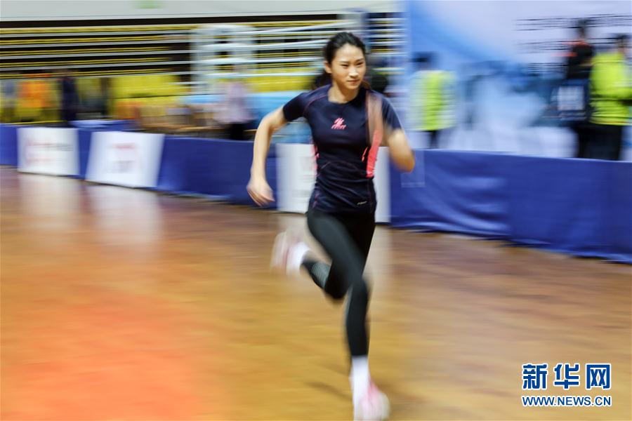 10月21日,广东队选手招甜甜在30米跑测试中。 当日,在河北省迁安市唐山九江体育中心进行的2020年“迁安杯”全国女子拳击锦标赛赛程过半,主办方举行体能测试,各级别前四强选手参加了30米跑、垂直纵跳、卧推相对力量和背肌耐力四项测试。 新华社记者 欧东衢 摄