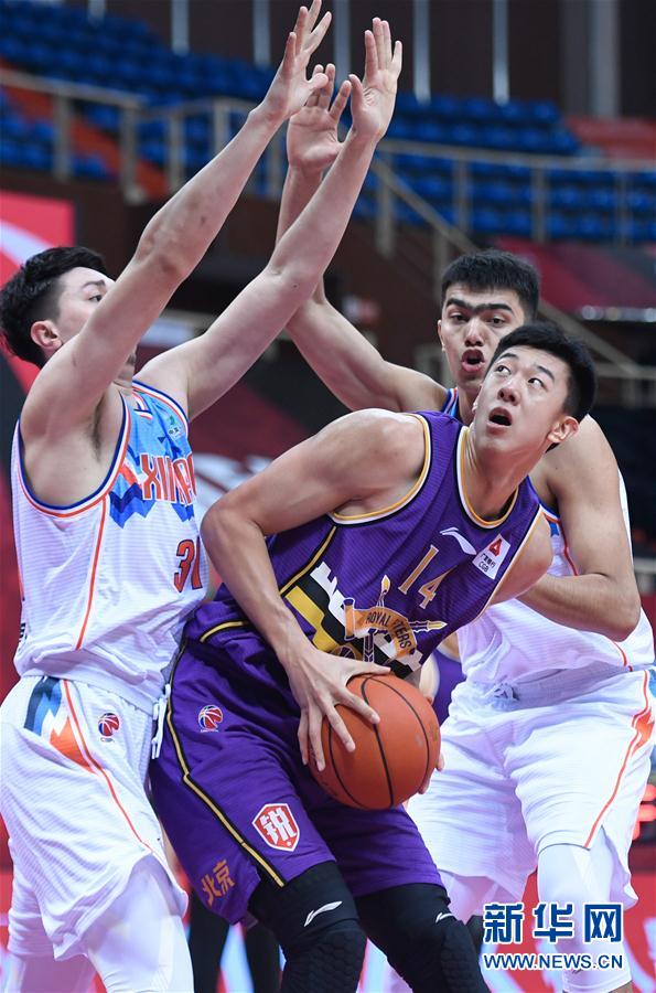 10月21日,北京紫禁勇士队球员王少杰(右)在比赛中进攻。 当日,在浙江诸暨举行的2020-2021赛季中国男子篮球职业联赛(CBA)第一阶段第二轮比赛中,北京紫禁勇士队以92比123不敌新疆伊力特队。 新华社记者黄宗治摄