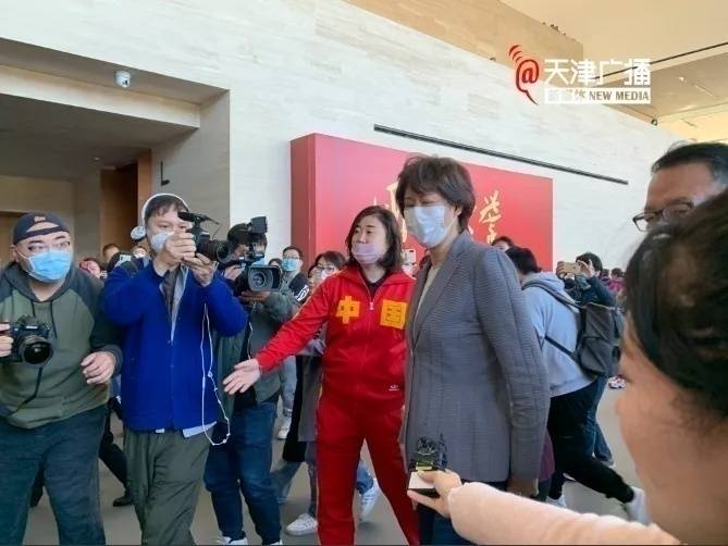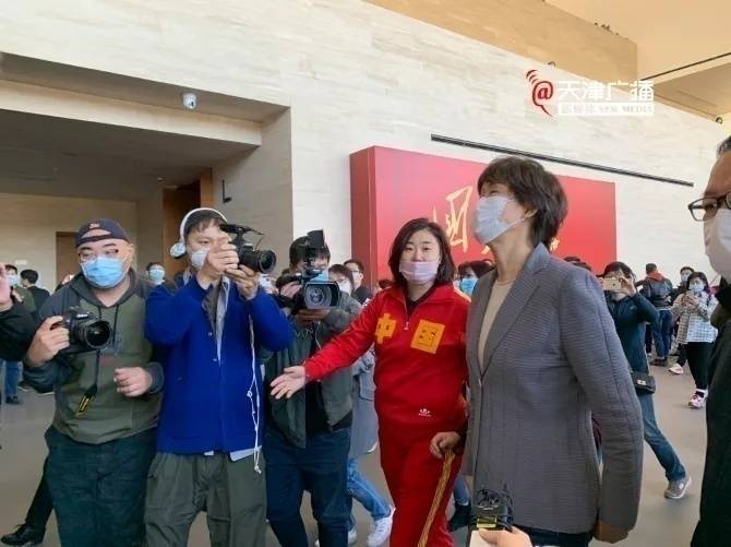 在郎平出现前,天津美术馆外就早已排起了长龙。13点30分左右,奥运冠军张娜、张平、魏秋月和天津体育学院的同学们就已经来到天津美术馆,等待郎平指导前来参观。