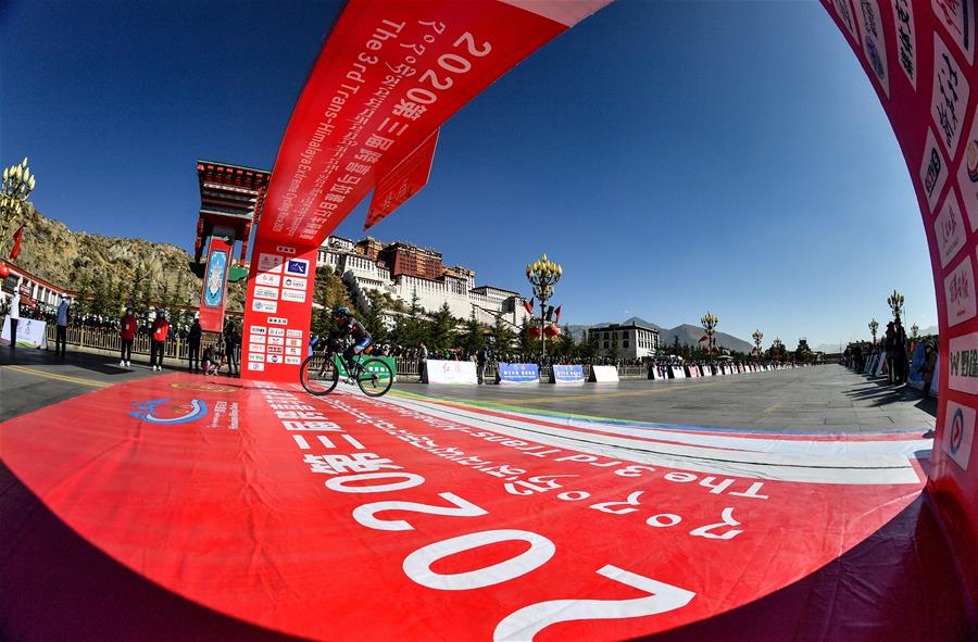 10月22日,参赛选手完成比赛后在荣誉骑行中。 当日,为期三天的第三届跨喜马拉雅自行车极限赛在拉萨完赛,本次比赛分为公路自行车赛(全程总距离218公里)和山地自行车赛(全程总距离226公里),共分三个赛段进行,起点设在林芝市会展中心,终点在拉萨市布达拉宫广场。共有11支队伍52名选手参加公路自行车赛,15支队伍53名选手参加山地自行车赛。 新华社记者 晋美多吉 摄