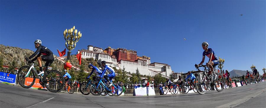 10月22日,参赛选手完成比赛后在荣誉骑行中。 当日,为期三天的第三届跨喜马拉雅自行车极限赛在拉萨完赛,本次比赛分为公路自行车赛(全程总距离218公里)和山地自行车赛(全程总距离226公里),共分三个赛段进行,起点设在林芝市会展中心,终点在拉萨市布达拉宫广场。共有11支队伍52名选手参加公路自行车赛,15支队伍53名选手参加山地自行车赛。 新华社记者 晋美多吉 摄