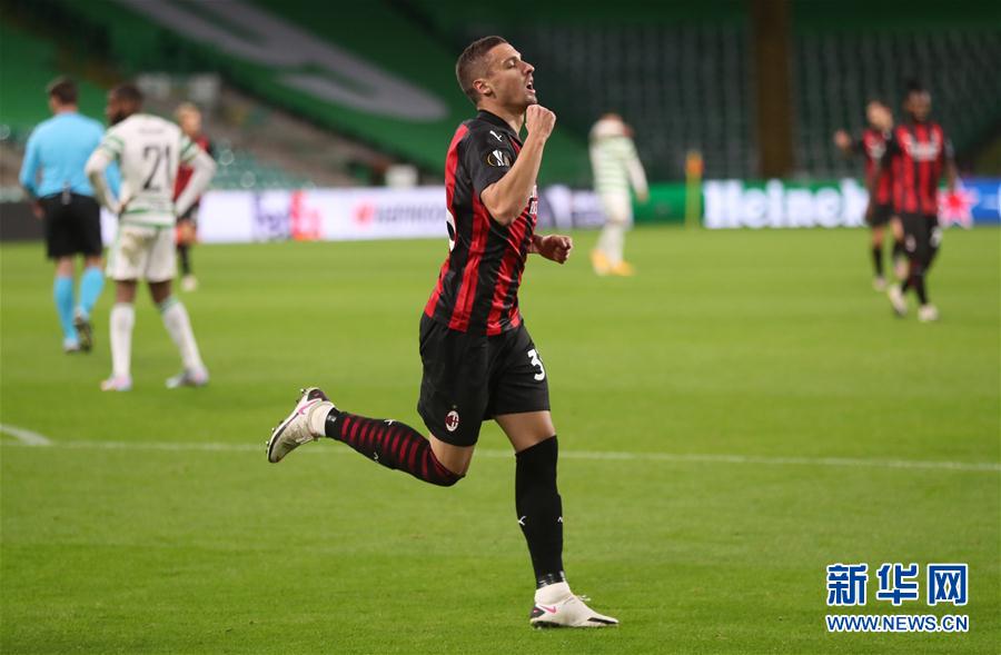 10月22日,AC米兰队球员克鲁尼奇在进球后庆祝。 当日,在2020-2021赛季欧罗巴联赛小组赛H组首轮比赛中,意甲AC米兰队客场以3比1战胜苏超凯尔特人队。 新华社/路透