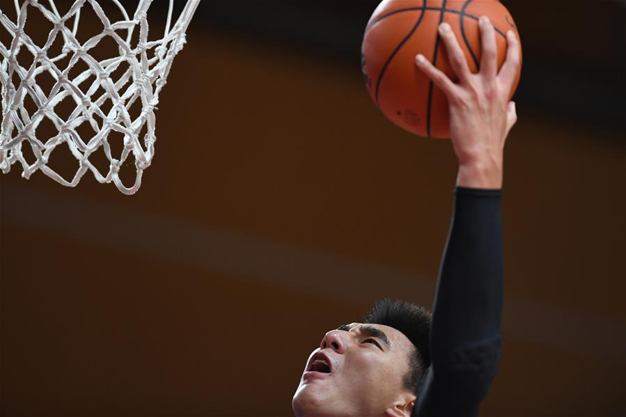 10月23日,天津先行者队球员金鑫在比赛中上篮。 当日,在浙江诸暨举行的2020-2021赛季中国男子篮球职业联赛(CBA)第一阶段第三轮比赛中,青岛国信海天队以104比96战胜天津先行者队。 新华社记者 沙达提 摄