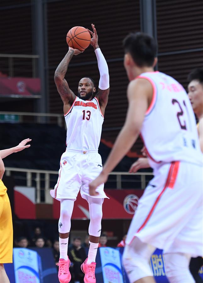 10月23日,广东东莞大益队球员威姆斯(左)在比赛中投篮。 当日,在浙江诸暨举行的2020-2021赛季中国男子篮球职业联赛(CBA)第一阶段第三轮比赛中,广东东莞大益队以115比106战胜浙江广厦控股队。 新华社记者 黄宗治 摄
