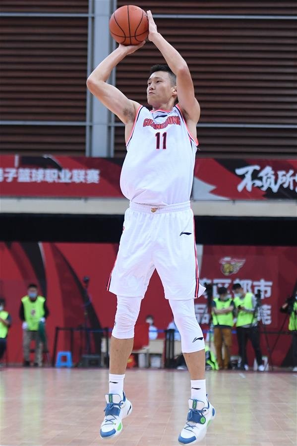 10月23日,广东东莞大益队球员周鹏在比赛中投篮。 当日,在浙江诸暨举行的2020-2021赛季中国男子篮球职业联赛(CBA)第一阶段第三轮比赛中,广东东莞大益队以115比106战胜浙江广厦控股队。 新华社记者 黄宗治 摄