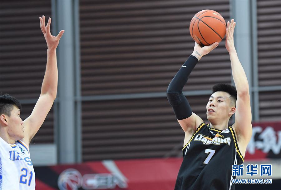 10月25日,辽宁本钢队球员张镇麟(右)在比赛中投篮。 当日,在浙江诸暨举行的2020-2021赛季中国男子篮球职业联赛(CBA)第一阶段第四轮比赛中,辽宁本钢队以107比86战胜苏州肯帝亚队。 新华社记者 翁忻旸 摄