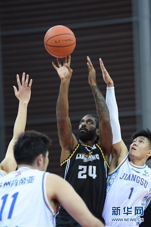 10月25日,辽宁本钢队球员梅奥(中)在比赛中投篮。 当日,在浙江诸暨举行的2020-2021赛季中国男子篮球职业联赛(CBA)第一阶段第四轮比赛中,辽宁本钢队以107比86战胜苏州肯帝亚队。 新华社记者 翁忻旸 摄