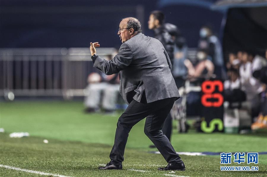 10月26日,大连人队主教练贝尼特斯在场边指挥。 当日,在2020赛季中国足球协会超级联赛(大连赛区)第17轮比赛中,天津泰达队以2比0战胜大连人队。 新华社记者潘昱龙摄
