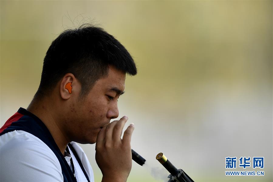 10月26日,山东队选手齐迎在男子飞碟多向资格赛75靶比赛中。 当日,2020全国射击锦标赛(飞碟项目)暨奥运会初步队伍选拔赛男子多向资格赛75靶比赛在山西临汾进行。 新华社记者 张宏祥 摄