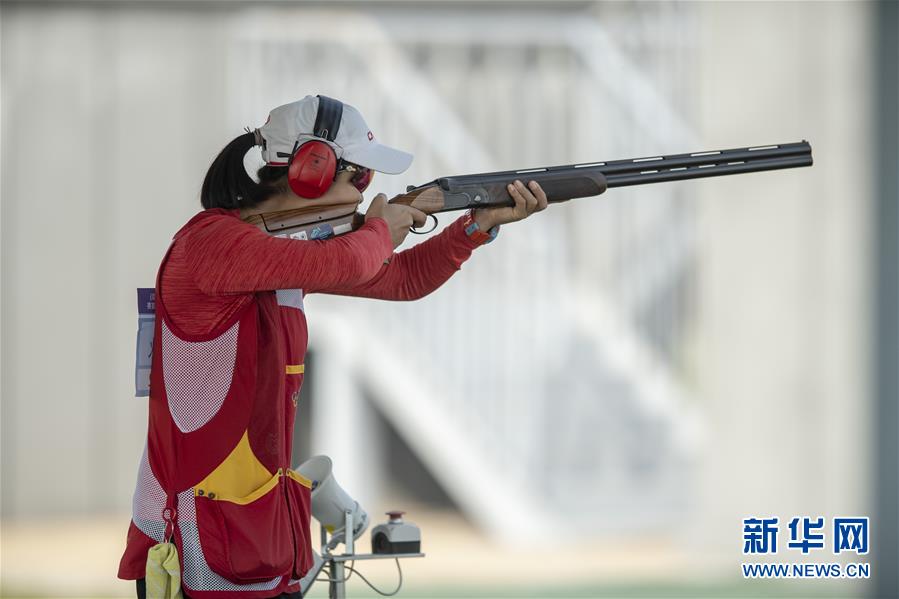10月26日,广东队选手张鑫秋在女子飞碟多向资格赛75靶比赛中。 当日,2020全国射击锦标赛(飞碟项目)暨奥运会初步队伍选拔赛女子飞碟多向资格赛75靶比赛在山西临汾举行。 新华社记者杨晨光摄