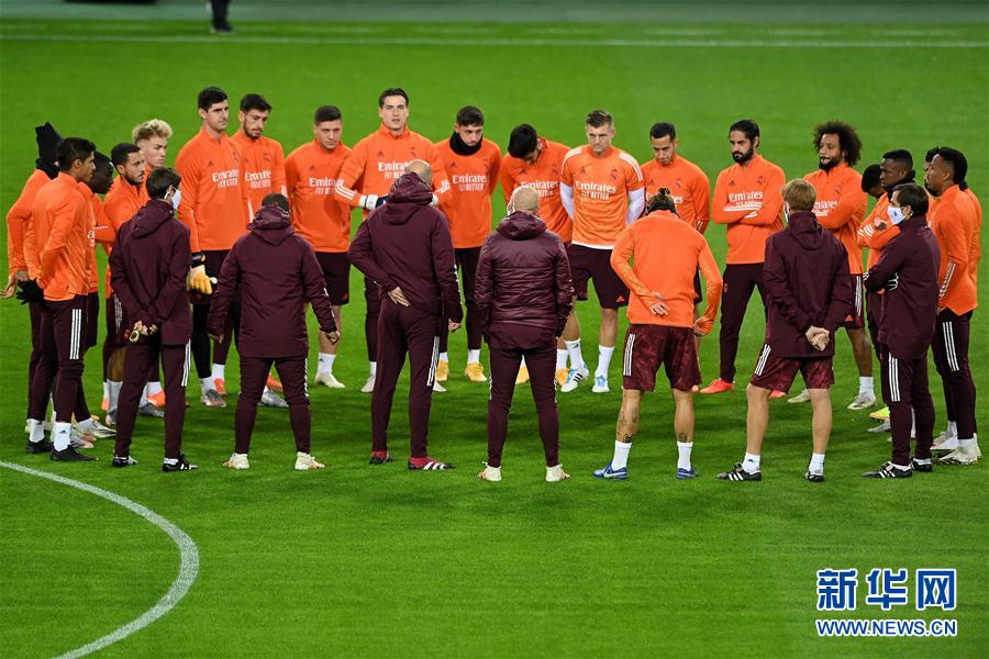 10月26日,皇家马德里队球员和教练员参加训练。 当日,西甲皇家马德里队在德国门兴格拉德巴赫进行训练,备战10月27日与德甲门兴格拉德巴赫队的欧冠联赛B组的比赛。 新华社发(乌尔里希·胡夫纳格尔摄)