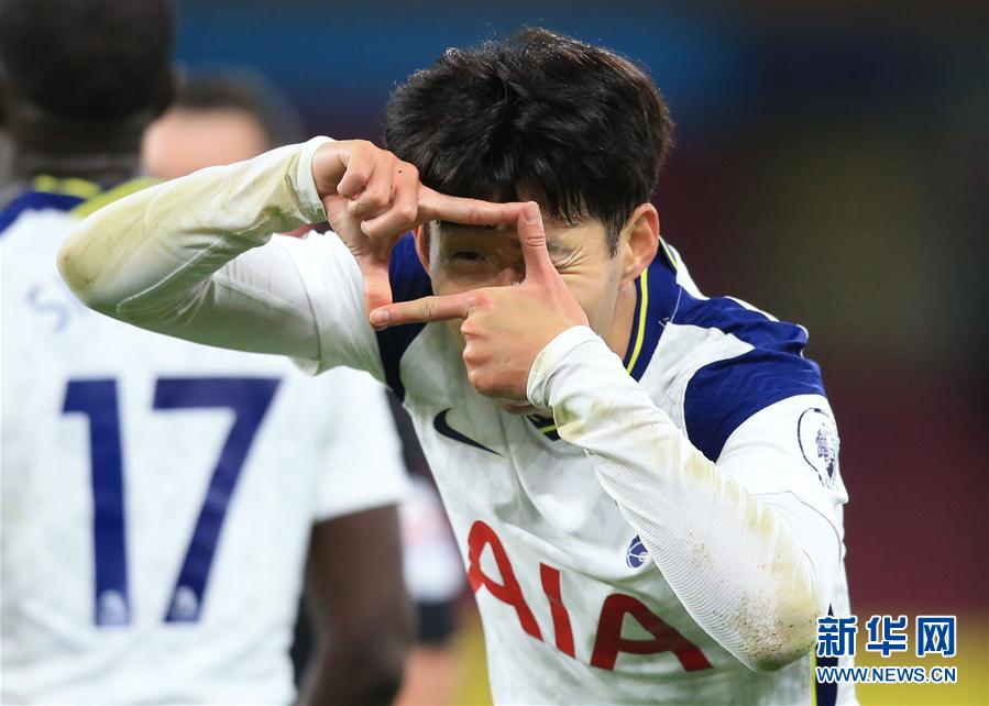 10月26日,热刺队球员孙兴民庆祝进球。 当日,在2020-2021赛季英格兰足球超级联赛第六轮比赛中,托特纳姆热刺队客场以1比0战胜伯恩利队。 新华社/路透