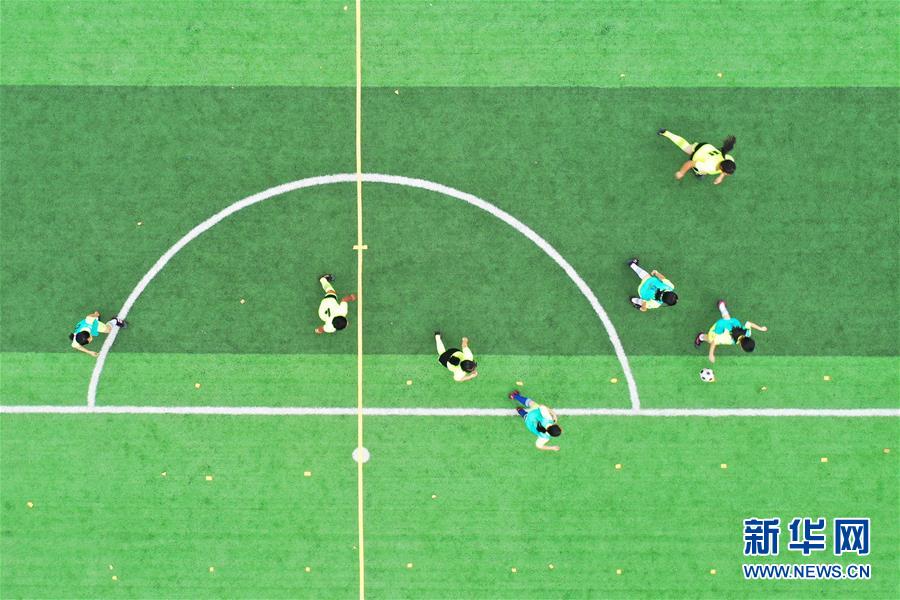10月27日,在河南省平顶山市宝丰县中兴路小学,学生在参加足球比赛(无人机照片)。 连日来,一场青少年运动会在河南省宝丰县举行,来自该县各中小学的学生在足球、篮球、乒乓球三个项目的比赛中奋力拼搏,展示风采,尽享运动带来的快乐。 新华社发(何五昌 摄)