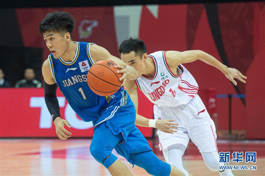 10月27日,苏州肯帝亚队球员黄荣奇(左)在比赛中带球突破。 当日,在浙江诸暨举行的2020-2021赛季中国男子篮球职业联赛(CBA)第一阶段第五轮比赛中,苏州肯帝亚队以114比113战胜青岛国信海天队。 新华社发(江汉摄)