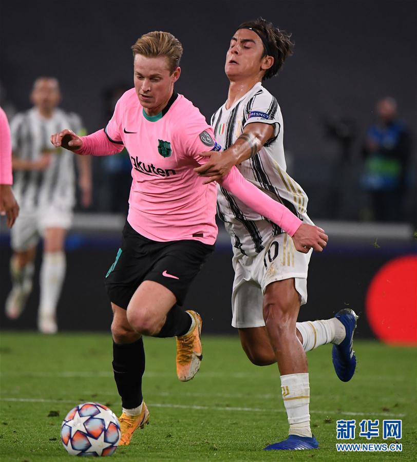 10月28日,尤文图斯队球员迪巴拉(右)防守巴塞罗那队球员德容。 当日,在2020-2021赛季欧足联冠军联赛小组赛G组第二轮的一场比赛中,西甲巴塞罗那队客场以2比0战胜意甲尤文图斯队。 新华社发(阿尔贝托·林格利亚摄)