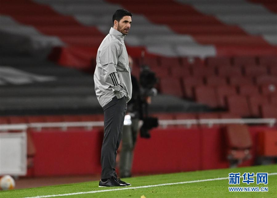 10月29日,阿森纳队主教练阿尔特塔在场边观战。 当日,在2020-2021赛季欧罗巴联赛小组赛B组第二轮的一场比赛中,英超阿森纳队主场以3比0战胜爱尔兰超级联赛的敦达克队。 新华社/路透