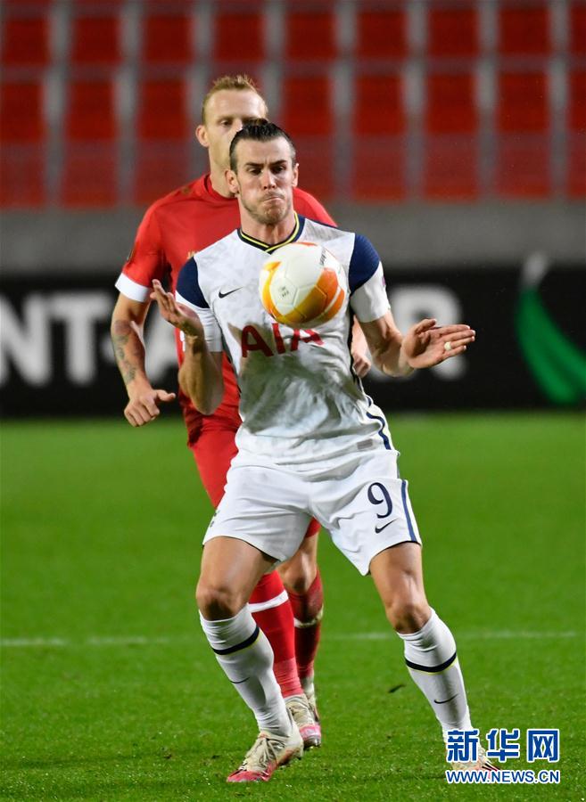 10月29日,热刺队球员贝尔(前)在比赛中拼抢。 当日,在2020-2021赛季欧罗巴联赛小组赛J组第二轮的一场比赛中,英超托特纳姆热刺队客场以0比1不敌比甲安特卫普队。 新华社/法新