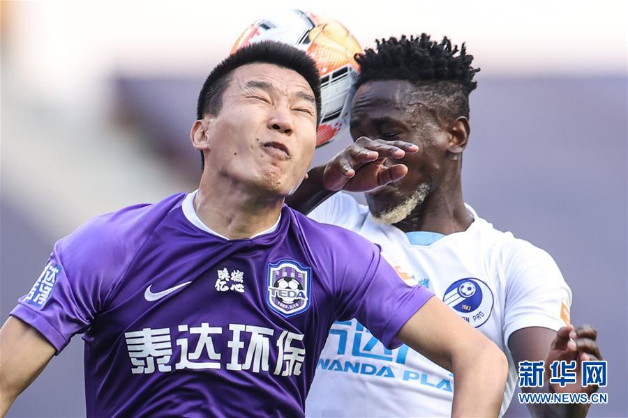 10月26日至29日,2020赛季中超联赛第17轮比赛战罢。 在苏州赛区进行的争冠组两场半决赛的首回合均以平局告终,晋级悬念将留到次回合揭晓:广州恒大和北京国安0:0互交白卷,江苏苏宁队和上海上港队1:1握手言和。在另外两场争冠组排位赛中,河北华夏幸福2:2战平山东鲁能泰山,上海申花以3:1击败重庆当代。 在大连赛区进行的保级组第二轮比赛中,天津泰达2:0战胜大连人;河南建业凭借巴索戈两次助攻的出色表现,2:1逆转战胜广州富力;深圳佳兆业凭借外援马里的补时绝杀,1:0战胜石家庄永昌;武汉卓尔队2:1力克青岛黄海青港队。 大连人 0-2 天津泰达 整个中超第一阶段未尝胜绩的天津泰达进入第二阶段后仿佛换了一支球队。他们在26日进行的保级组第二轮首回合2:0力克大连人队,进入第二阶段后保持不败。 由于两支球队都没了降级压力,比赛开始后进行得比较开放。第12分钟,大连人队张翀出现失误,泰达外援阿奇姆彭补射破门帮助球队1:0领先。2分钟后,大连人前锋博阿滕反击中单刀破门,但VAR回放显示越位在先,裁判示意进球无效。第41分钟,阿奇姆彭再一次展示了精准的脚法,他在角度很小的情况下低射入网,将泰达的领先优势扩大到两球。下半场双方各有攻守,但都未能改写比分。 双方次回合较量将在10月31日进行。两回合胜者将进入联赛第九名争夺战,败者将进行11-12名排位赛。 图为10月26日,天津泰达队球员刘洋(左)与大连人队球员博阿滕争抢头球。 新华社记者潘昱龙摄