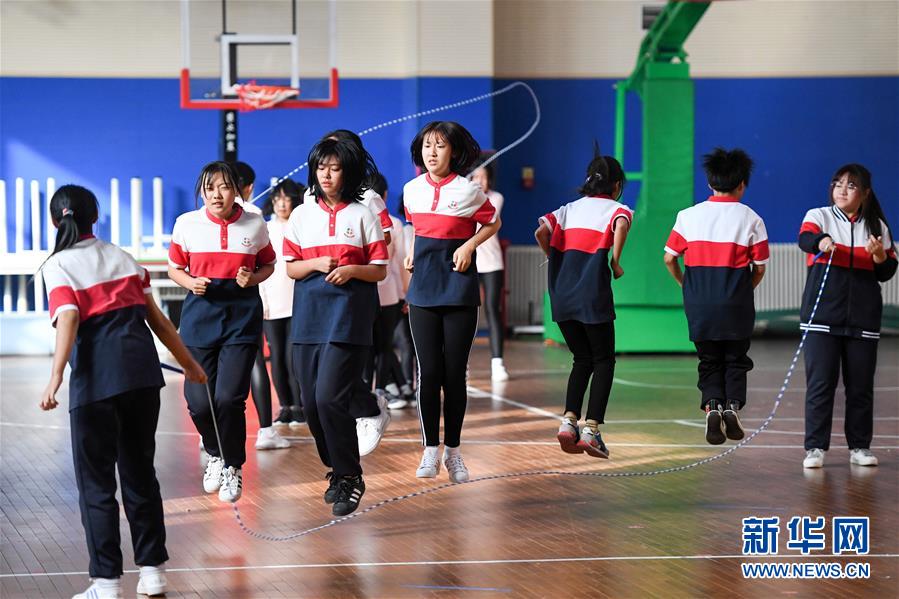 10月31日,密云区十里堡中学的选手在2分钟集体同步跳中学女子组比赛中。 当日,2020年北京市中小学生民族传统体育节跳绳比赛在北京市第八中学京西附属小学举行。据了解,本次跳绳比赛分为中学男子、女子组,小学男子、女子组,比赛设有2分钟集体“8”字跳、30秒双摇跳、1分钟一带一单摇跳等9个项目。共有全市30所学校1400余名中小学生参加本次比赛。 新华社记者 任超 摄