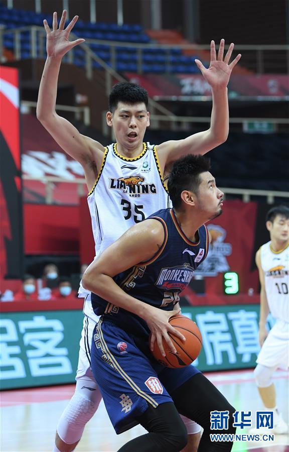 10月30日,辽宁本钢队球员朱荣振(后)防守南京同曦宙光队球员孙思尧的进攻。 当日,在浙江诸暨举行的2020-2021赛季中国男子篮球职业联赛(CBA)第一阶段第六轮比赛中,辽宁本钢队以125比99战胜南京同曦宙光队。 新华社记者 翁忻旸 摄