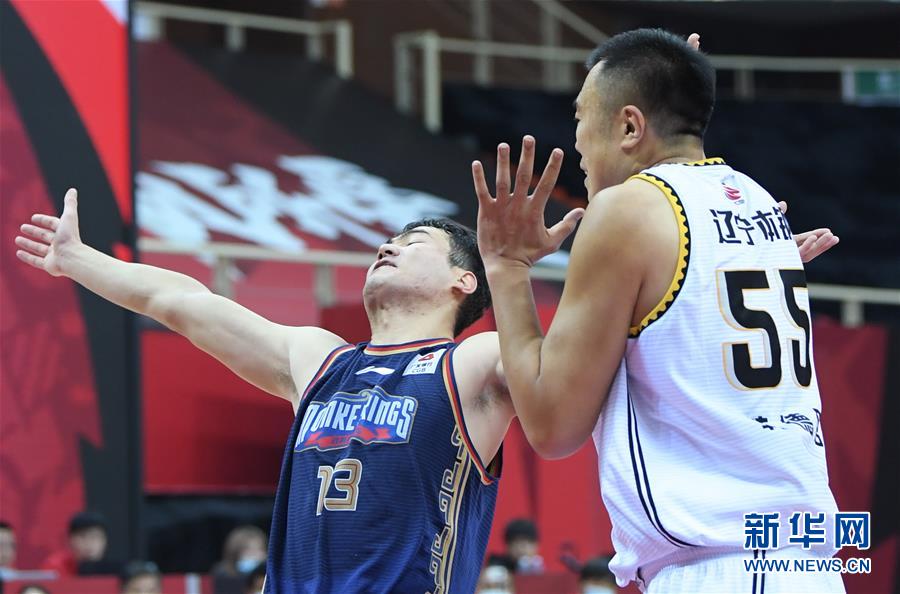 10月30日,辽宁本钢队球员韩德君(右)对南京同曦宙光队球员焦恩格尔犯规。 当日,在浙江诸暨举行的2020-2021赛季中国男子篮球职业联赛(CBA)第一阶段第六轮比赛中,辽宁本钢队以125比99战胜南京同曦宙光队。 新华社记者 翁忻旸 摄