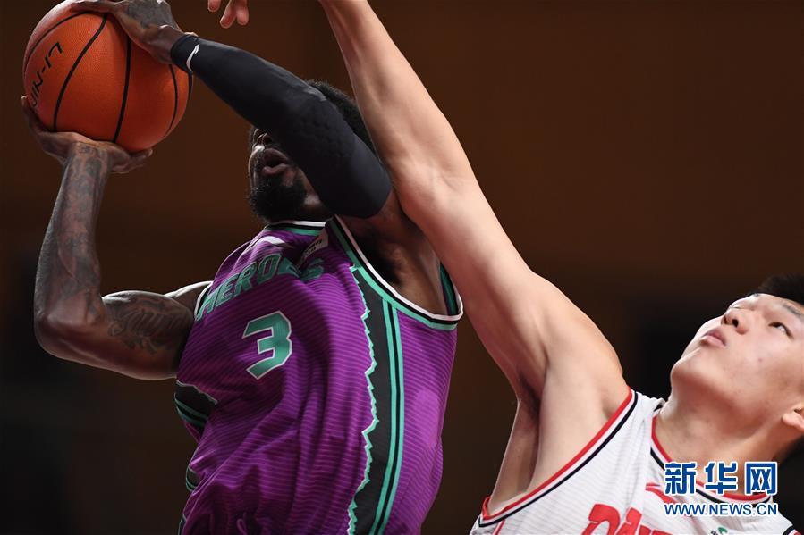 10月30日,山东西王队球员哈里斯(左)在比赛中上篮。 当日,在浙江诸暨举行的2020-2021中国男子篮球职业联赛(CBA)第一阶段第六轮比赛中,山东西王队以91比103不敌青岛国信海天队。 新华社记者 沙达提 摄